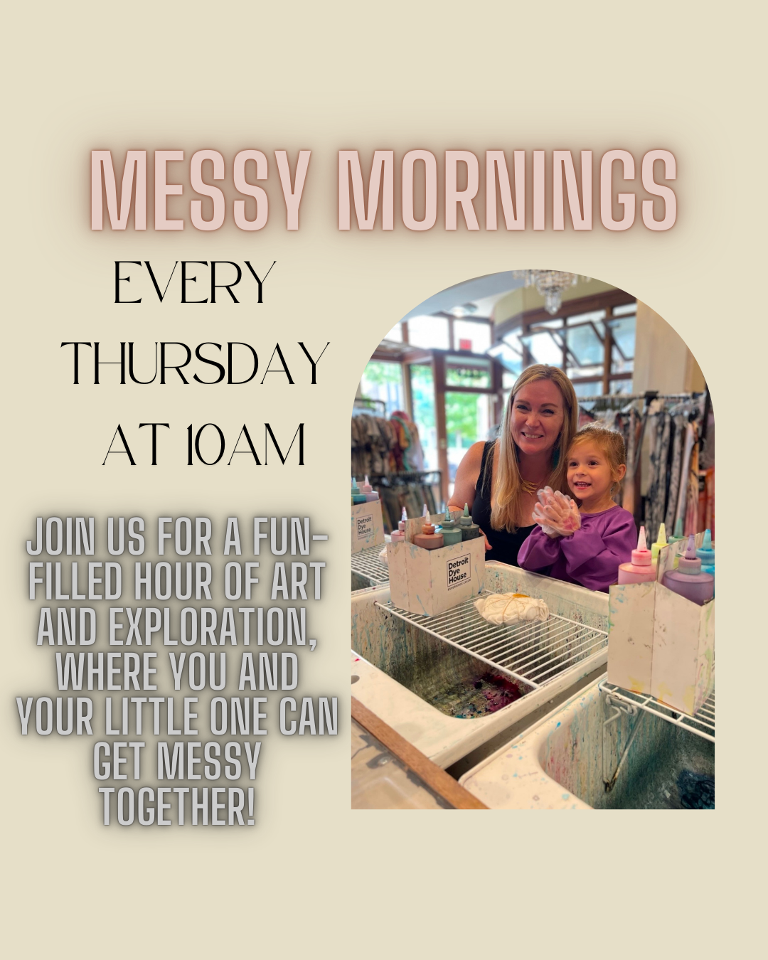 Get ready for a colorful, creative adventure at Messy Mornings—a special tie-dye class designed for toddlers (ages 3-6) and their adult companions! Created by Montessori teachers, this workshop focuses on fostering independence, focus, and concentration in young children, all while diving into the vibrant world of tie-dye.
